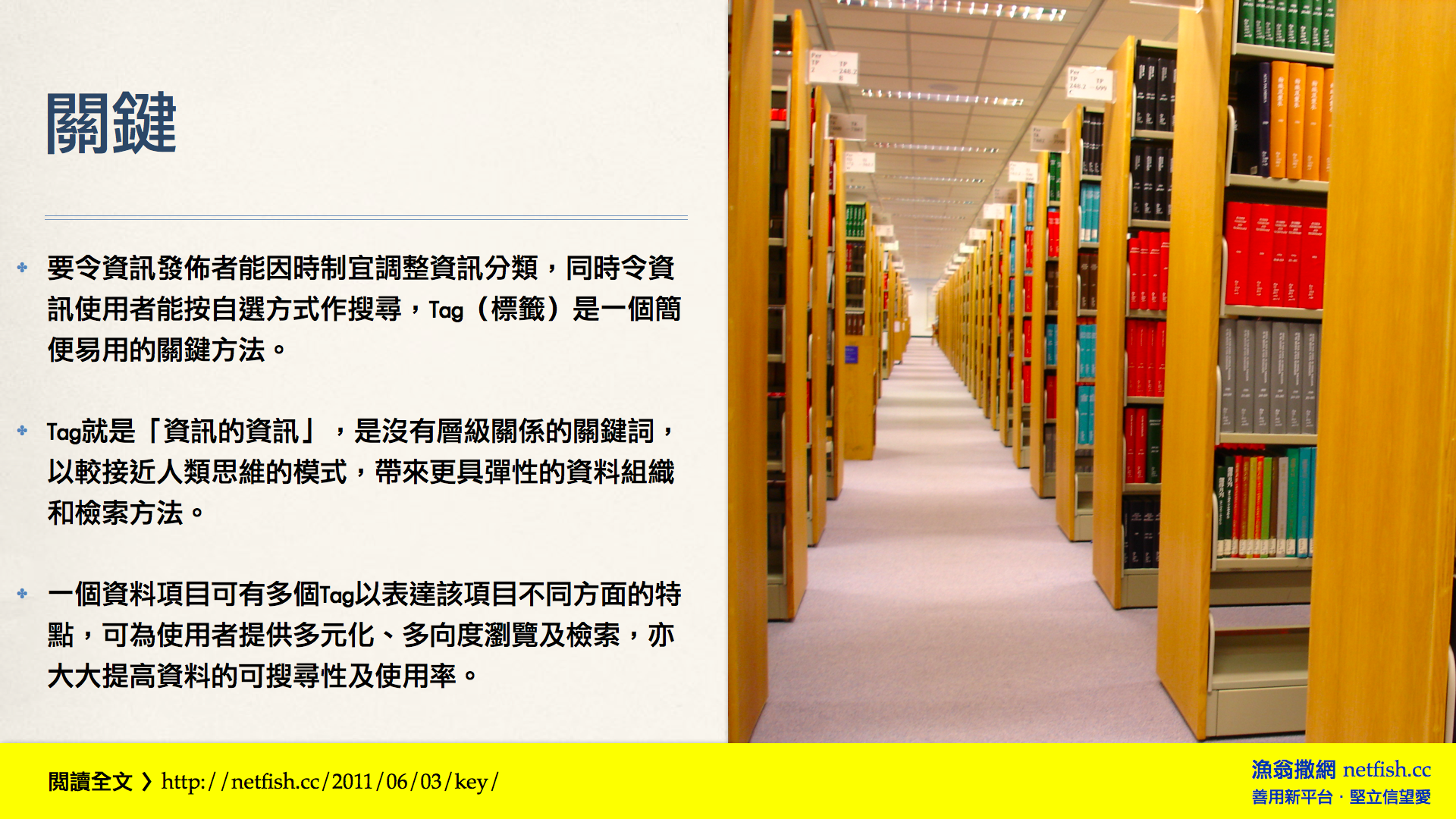 - 影音資料由於其難以作精確搜尋的特性,要加強資料間及與讀者間的連繫,難度較大。