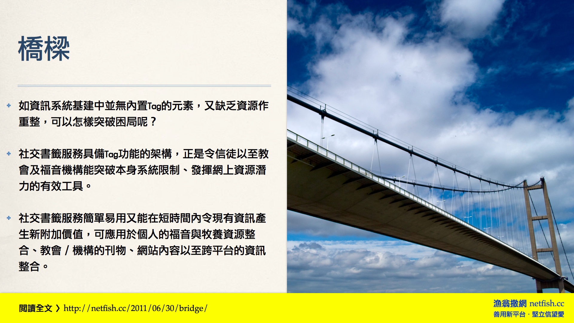- 以福音和牧養的影音資訊來說,提供互動文本可令影音資料間建立更緊密的關連,並與文字資料連合,交織成為豐富的福音與牧養資源寶庫,加強選取、組織及整合的能力,為福音與牧養工作提供重要支援。