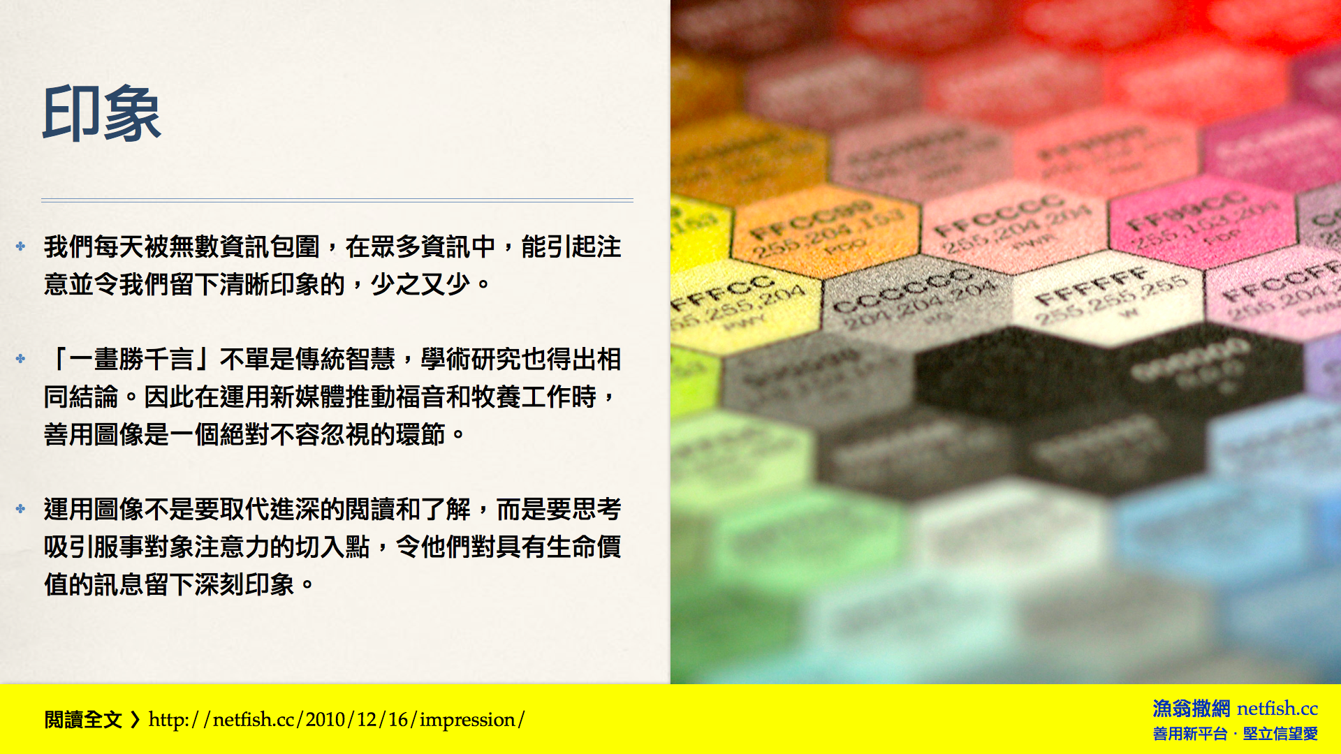 - 耶穌常常運用比喻講解真理,讓不同的人都能理解。我們身處在資訊繁多的世界中,當更要醒察如何學效耶穌以靈活淺白的方式,清楚表達福音與牧養資訊,啟迪思維,加深受眾的印象和了解。