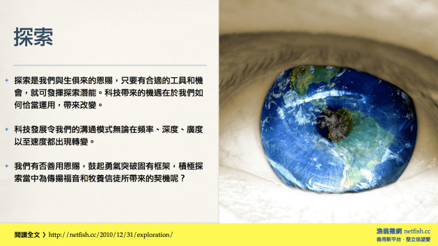 閱讀〈探索〉全文:http://netfish.cc/2010/12/31/exploration/